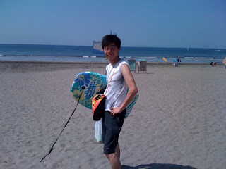 ひろったビート板をもって御満悦な表情を湛えるU氏。